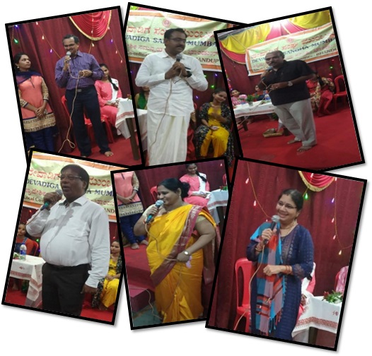 The program was organised in presence of Shri Vasu Devadiga immediate past President of Devadiga Sangha Mumbai spoke about Sangha and support available by Akshay Cooperative society for community, Shri Vishwanath B Devadiga, Hon. Gen. Secretary, Devadiga Sangha Mumbai, Shri Vishwanath P. Devadiga, Bhandup region LCC Chairman, Smt. Pramila V Sherigar, Devadiga Sangha Mumbai Women wing Jt. Secretary, Shri Jaya L Devadiga Ex-chairman Devadiga Sangha Mumbai Bhandup Region LCC, Shri Sudhakar Yellur spoke about Aatida Onji Dina, Shri Naresh Devadiga spoke about Sangha, its vision on 100th year anniversary and Devadiga Sangha Mumbai online portal proposed to launch very soon.