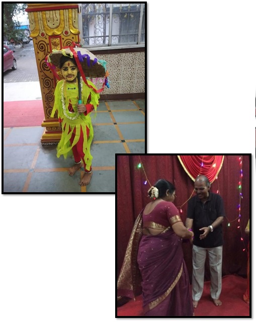 Kum. Ojal Kunder performed a traditional dance of Aati Kalenji on the song performed by Smt. Lolakshi Devadiga and Kum. Harshita Sherigar performed a solo dance which was appreciated by all.