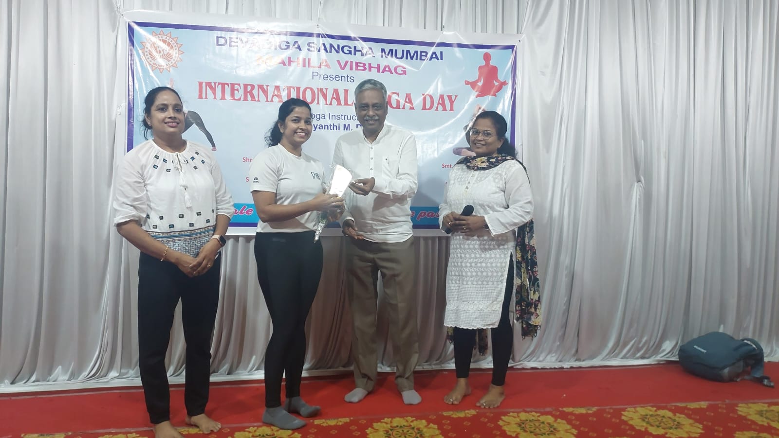 ಯೋಗದಿನದ ಕಾರ್ಯಕ್ರಮ ಸಂಯೋಜಕರಾದ ಸಚಿತಾ ಸಾಲಿಯಾನ್ ಅವರನ್ನು ಈ ಸಂದರ್ಭದಲ್ಲಿ ಸನ್ಮಾನಿಸಲಾಯಿತು. ಶ್ರೀಮತಿ. ಜಯಂತಿ ಎಂ ದೇವಾಡಿಗ ಅವರು ಯೋಗ ಪ್ರಾತ್ಯಕ್ಷಿಕೆಯಲ್ಲಿ ಭಾಗವಹಿಸಿದ ಎಲ್ಲಾ ಸದಸ್ಯರಿಗೆ ಧನ್ಯವಾದ ಸಮರ್ಪಿಸಿದರು. ಸೇರಿದ ಎಲ್ಲರಿಗೂ ಹಣ್ಣುಹಂಪಲುಗಳ ಉಪಹಾರ ನೀಡುವುದರೊಂದಿಗೆ ಕಾರ್ಯಕ್ರಮವು ಕೊನೆಗೊಂಡಿತು.
