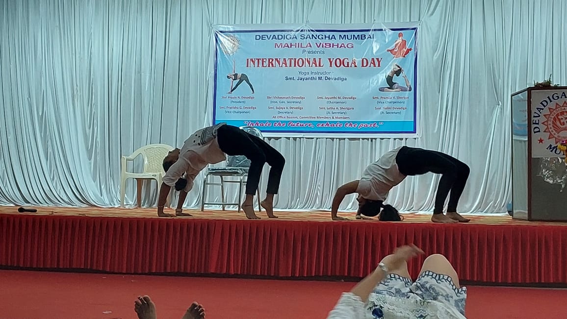 ನವಿ ಮುಂಬಯಿ:ದೇವಾಡಿಗ ಸಂಘ ಮುಂಬಯಿ ಇದರ ಮಹಿಳಾ ವಿಭಾಗದ ವತಿಯಿಂದ ಅಂತರರಾಷ್ಟ್ರೀಯ ಯೋಗ ದಿನವನ್ನು ಜೂನ್ 18 ರಂದು ಆಚರಿಸಲಾಯಿತು. ಆ ಪ್ರಯುಕ್ತ ಇಲ್ಲಿಯ ನೆರೂಲ್ ಇಲ್ಲಿರುವ ದೇವಾಡಿಗ ಭವನದಲ್ಲಿ ವಿವಿಧ ಯೋಗಾಸನ ಮತ್ತು ಆರೋಗ್ಯದ ವಿಷಯದ ಕುರಿತ ಕಾರ್ಯಕ್ರಮವನ್ನು 18 ಜೂನ್ 2023 ರಂದು (ಭಾನುವಾರ) ವಿಭಾಗದ ಕಾರ್ಯಾಧ್ಯಕ್ಷೆ ಮತ್ತು ಯೋಗಪಟು ಶ್ರೀಮತಿ ಜಯಂತಿ ಎಂ. ದೇವಾಡಿಗ ಇವರ ನೇತೃತ್ವದಲ್ಲಿ ನಡೆಯಿತು. ಕಾರ್ಯಕ್ರಮದ ಆರಂಭದಲ್ಲಿ ಮಹಿಳಾ ವಿಭಾಗದ ಕಾರ್ಯದರ್ಶಿ ಶ್ರೀಮತಿ ಸುಜಯ ವಿ. ದೇವಾಡಿಗ ಅವರು ಎಲ್ಲಾ ಸದಸ್ಯರನ್ನು ಸ್ವಾಗತಿಸಿದರು. ಸಂಘದ ಅಧ್ಯಕ್ಷರು ಶ್ರೀ ಪ್ರವೀಣ್ ಎನ್. ದೇವಾಡಿಗ ಇವರು ಸಾಂಪ್ರದಾಯಿಕವಾಗಿ ದೀಪ ಬೆಳಗಿಸಿ ಕಾರ್ಯಕ್ರಮಕ್ಕೆ ಚಾಲನೆ ನೀಡಿದರು. ಶ್ರೀಮತಿ ಜಯಂತಿ ಎಂ. ದೇವಾಡಿಗ ಇವರು ಸಹಕರಿಸಿದರು. ಈ ಸಂದರ್ಭದಲ್ಲಿ ಸಂಘದ ಮಾಜಿ ಅಧ್ಯಕ್ಷರುಗಳಾದ ಶ್ರೀ ವಾಸು ಎಸ್. ದೇವಾಡಿಗ, ಶ್ರೀ ಹಿರಿಯಡ್ಕ ಮೋಹನದಾಸ್, ಶ್ರೀ ರವಿ ಎಸ್. ದೇವಾಡಿಗ ಉಪಾಧ್ಯಕ್ಷರಾದ ಶ್ರೀ ನರೇಶ್ ಎಸ್. ದೇವಾಡಿಗ, ಗೌರವ ಪ್ರಧಾನ ಕಾರ್ಯದರ್ಶಿ ಶ್ರೀ ವಿಶ್ವನಾಥ ಬಿ. ದೇವಾಡಿಗ, ಯುವ ವಿಭಾಗದ ಕಾರ್ಯಾಧ್ಯಕ್ಷ ಅಡ್ವೋಕೇಟ್ ಬ್ರಿಜೇಶ್ ಎಸ್. ದೇವಾಡಿಗ, ನವಿ ಮುಂಬಯಿ ಪ್ರಾದೇಶಿಕ ಸಮಿತಿಯ ಕಾರ್ಯಾಧ್ಯಕ್ಷರಾದ ಶ್ರೀ ರಮೇಶ್ ದೇವಾಡಿಗ, ಶ್ರೀಮತಿ. ಜಯಂತಿ ಎಂ ದೇವಾಡಿಗ, ಮಹಿಳಾ ವಿಭಾಗದ ಮಾಜಿ ಅಧ್ಯಕ್ಷರುಗಳು ಶ್ರೀಮತಿ. ಪ್ರಫುಲ್ಲ ವಿ. ದೇವಾಡಿಗ, ಶ್ರೀಮತಿ. ಪುಷ್ಪಾ ಎಸ್. ರಾವ್, ಶ್ರೀಮತಿ ಜಯಂತಿ ಆರ್. ಮೊಯ್ಲಿ, ಉಪಾಧ್ಯಕ್ಷರು - ಶ್ರೀಮತಿ. ಪ್ರತಿಭಾ ಜಿ. ದೇವಾಡಿಗ, ಶ್ರೀಮತಿ. ಪ್ರಮೀಳಾ ವಿ ಶೇರಿಗಾರ್,ಜೊತೆ ಕಾರ್ಯದರ್ಶಿಗಳಾದ ಶ್ರೀಮತಿ. ಲತಾ ಎ ಶೇರಿಗಾರ ಮತ್ತು ಶ್ರೀಮತಿ ನಳಿನಿ ದೇವಾಡಿಗ ಇವರು ವೇದಿಕೆಯಲ್ಲಿ ಉಪಸ್ಥಿತರಿದ್ದರು. ನವಿ ಮುಂಬಯಿ ಪ್ರಾದೇಶಿಕ ಸಮಿತಿಯ ಶ್ರೀಮತಿ ಆಶಾ ಆರ್, ದೇವಾಡಿಗ ಮತ್ತು ಮತ್ತು ಶ್ರೀಮತಿ. ಆಶಾ ಪಿ. ದೇವಾಡಿಗ ಇವರು ಪ್ರಾರ್ಥನೆ ಸಲ್ಲಿಸಿದರು. ಈ ಸಂದರ್ಭದಲ್ಲಿ ಸಂಘದ ಅಧ್ಯಕ್ಷರಾದ ಶ್ರೀ ಪ್ರವೀಣ್ ಎನ್. ದೇವಾಡಿಗ ಇವರು ಎಲ್ಲರಿಗೂ ಶುಭಾಶಯ ಕೋರಿದರು.