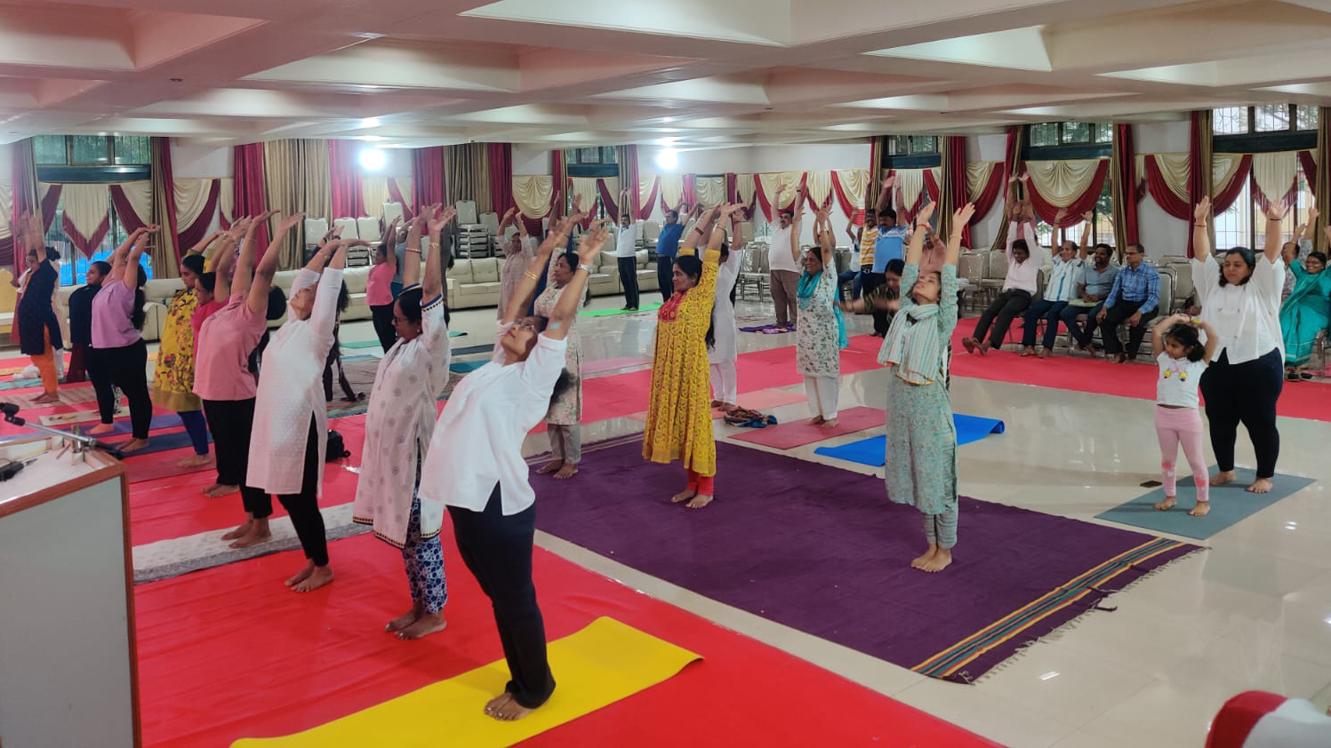 ದೇವಾಡಿಗ ಸಂಘ ಮುಂಬಯಿ ಇದರ ಮಹಿಳಾ ವಿಭಾಗದ ವತಿಯಿಂದ ಅಂತರರಾಷ್ಟ್ರೀಯ ಯೋಗ ದಿನಾಚರಣೆಯನ್ನು ಶ್ರೀಮತಿ ಜಯಂತಿ ದೇವಾಡಿಗ ಇವರ ನೇತೃತ್ವದಲ್ಲಿ ಇಂದು (23-6-2024) ಸಂಜೆ ಇಲ್ಲಿಯ ನೆರೂಲ್ ಪಶ್ಚಿಮದ ದೇವಾಡಿಗ ಭವನದಲ್ಲಿ ಆಚರಿಸಿದರು. ಈ ಸಂದರ್ಭದಲ್ಲಿ ಸೇರಿದ ಸಂಘದ ಸದಸ್ಯರಿಗೆ ಯೋಗದ ಮಾಹಿತಿ ನೀಡಿದ ಜಯಂತಿ ದೇವಾಡಿಗ ಇವರು ಅನೇಕ ಯೋಗಾಸನಗಳ ಪ್ರಾತ್ಯಕ್ಷಿಕೆ ನೀಡಿ ಯೋಗದಿಂದ ಆರೋಗ್ಯವನ್ನು ಹೇಗೆ ಕಾಪಾಡಿಕೊಳ್ಳಬಹುದು ಎಂದು ತಿಳಿಸಿ ಹೇಳಿದರು. “ಜನರು ಹೆಚ್ಚಾಗಿ ಮಂಡಿನೋವು, ಸೊಂಟ ನೋವು, ಬೊಜ್ಜು, ಥೈರಾಯಿಡ್, ಹೃದಯರೋಗ, ಡಯಾಬೆಟಿಕ್ಸ್, ಹೈ ಮತ್ತು ಲೊ ಬ್ಲಡ್ ಪ್ರೆಷರ್ ಖಾಯಿಲೆಗಳಿಂದ ಬಳಲುತ್ತಿದ್ದು ನಿಯಮಿತ ಮತ್ತು ವೈಜ್ಞಾನಿಕ ಯೋಗದಿಂದ ಇಂತಹ ಎಲ್ಲಾ ಖಾಯಿಲೆಗಳಿಗೆ ಪರಿಹಾರ ಕಂಡುಕೊಳ್ಳಬಹುದು”; ಎಂದು ಶ್ರೀಮತಿ ಜಯಂತಿ ದೇವಾಡಿಗ ಇವರು ತಿಳಿಸಿ ಹೇಳಿದರು.